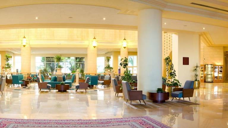 Das El Mouradi Hammamet umfasst 33 Junior-Suiten und 269 Doppelzimmer, verteilt auf 5 Etagen und bequem über einen Lift erreichbar. Die Rezeption bietet englisch- und deutschsprachige Unterstützung. Zu den Einrichtungen gehören ein Souvenirshop, ein Garten, ein Spielplatz, ein Spielzimmer sowie ein Minimarkt. Der Sicherheitsschutz ist rund um die Uhr gewährleistet. Zudem gibt es Konferenzräume und einen Transferservice. Rollstuhlgerechte Einrichtungen sind vorhanden.