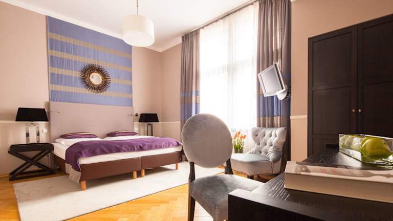 Das Hotel verfügt über 21 Nichtraucherzimmer auf 4 Etagen, die mit modernen Annehmlichkeiten ausgestattet sind. Die Zimmer sind in warmen Farben gehalten und verfügen über ein eigenes elegantes Badezimmer mit Pflegeprodukten. Zur Ausstattung gehören auch ein TV und kostenfreies WLAN.
