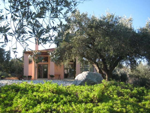 Jeden Morgen erwartet die Gäste ein hausgemachtes Frühstück mit einer Vielzahl von Optionen, darunter hausgebackenes Brot, Oliven, Kuchen und Eier aus Freilandhaltung. Das Frühstück wird im Innenhof des Gästehauses serviert und bietet eine herrliche Aussicht auf das Meer und den Olivenhain. Auf Anfrage werden den Gästen auch kühle Getränke und leichte Mahlzeiten serviert.