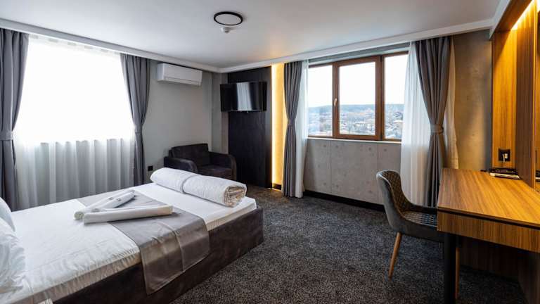 Das Hotel Elit liegt in Pernik und bietet eine zentrale Lage, die es Ihnen ermöglicht, die Sehenswürdigkeiten der Stadt und die umliegende Region bequem zu erkunden. In der Nähe befinden sich das Business-Center, die kommunalen und regionalen Verwaltungen, Geschäfte und Restaurants. Der Bahnhof und der Busbahnhof von Pernik sowie die Festung Krakra sind ebenfalls nur wenige Kilometer entfernt. Der Flughafen Sofia ist mit dem Auto in etwa einer Stunde zu erreichen.