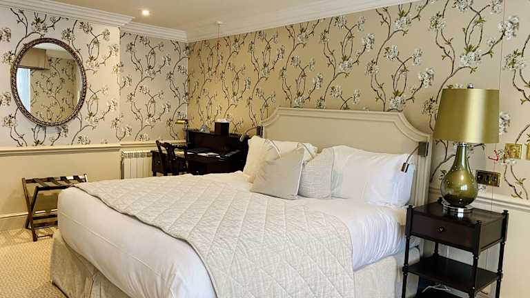 Die gastronomischen Einrichtungen umfassen mehrere Restaurants, darunter ein historisches Restaurant aus dem 15. Jahrhundert und die Horse Box Brasserie, die Gerichte aus regionalen Zutaten serviert. Das Hotel bietet Übernachtung mit Frühstück sowie spezielle Verpflegungsangebote wie Diätgerichte und Kindermenüs. Im Sommer gibt es die Möglichkeit, im Freien auf dem Südrasen zu speisen, der stimmungsvoll beleuchtet ist.