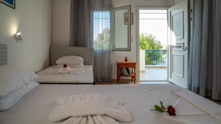In unmittelbarer Nähe des Hotels finden Sie eine Bäckerei und einen Minimarkt, in denen Sie sich mit allen notwendigen Lebensmitteln und Snacks versorgen können. Darüber hinaus gibt es zahlreiche Tavernen, Bars und Cafés in Marathokampos, in denen Sie lokale Spezialitäten genießen können.