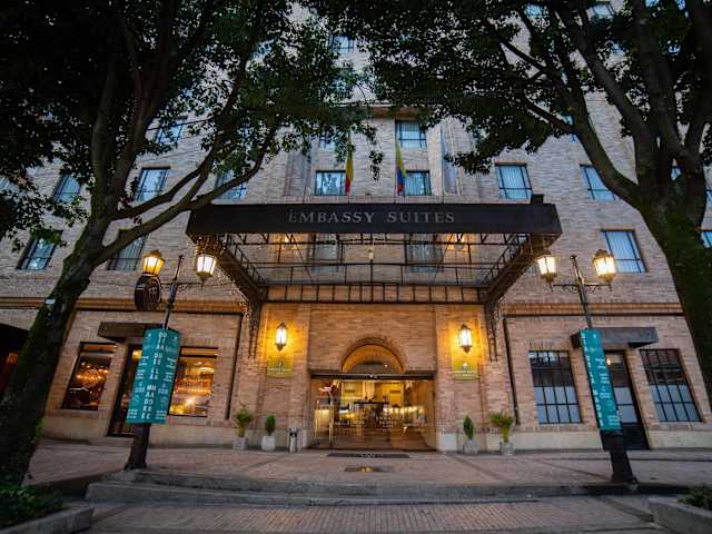 Das Embassy Suites by Hilton Bogotá - Rosales ist ein luxuriöses Hotel in Nord-Bogotá, das mit seinem Fitnesscenter, Wellnessbereich und seinen komfortablen Unterkünften überzeugt. Es liegt nur 200 Meter von der Calle 72 entfernt und bietet eine Vielzahl von Annehmlichkeiten wie ein Restaurant, kostenloses WLAN und Parkplätze. Genießen Sie den Komfort der Zimmer mit Schlafsofas und Teppichböden sowie Kabel-TV und Minibar. Im Restaurant Art Cafe können Sie internationale, lokale und neo-lateinische Gerichte probieren, während Sie bei der Ankunft kostenlose kalte Getränke vom Geschäftsführer erhalten. Entspannen Sie im Türkischen Bad und der Sauna des Hotels oder nutzen Sie den Souvenirshop und die Baby-/Kinderbetreuung. Die lebendige Zona Rosa mit ihren Restaurants und Pubs erreichen Sie in nur 5 Fahrminuten. Die 24-Stunden-Rezeption steht Ihnen zur Verfügung, um einen Flughafentransfer zum 45 Fahrminuten entfernten Flughafen El Dorado zu organisieren. In der Nähe des Hotels befindet sich auch das Einkaufszentrum Granahorrar.