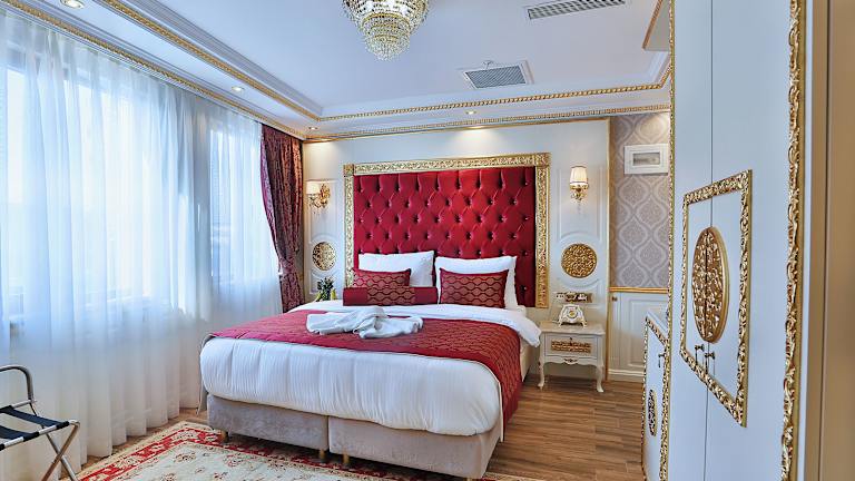 Die 49 individuell gestalteten Zimmer im Hotel Emirhan Palace bieten den Gästen ein gemütliches und komfortables Ambiente. Jedes Zimmer verfügt über eine Minibar, einen LCD-Fernseher und kostenloses WLAN. Das Badezimmer ist mit einer Dusche, einem Regenduschkopf und hochwertigen Designer-Toilettenartikeln ausgestattet. Einige Zimmer bieten zudem einen malerischen Blick auf den Garten.