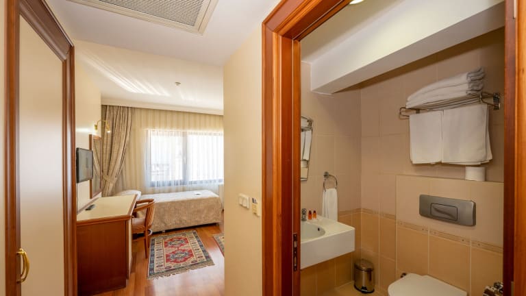 Das Hotel Erdal in Istanbul ist eine hervorragende Wahl für Ihren Aufenthalt in der Stadt. Mit seiner günstigen Lage in der Nähe von beliebten Sehenswürdigkeiten und einer Vielzahl von Annehmlichkeiten bietet es alles, was Sie für einen angenehmen Aufenthalt benötigen. Die klimatisierten Zimmer sind komfortabel eingerichtet und verfügen über kostenfreies WLAN und ein eigenes Bad. Genießen Sie ein kontinentales Frühstück und profitieren Sie von den zusätzlichen Serviceleistungen wie dem Zimmerservice, der 24-Stunden-Rezeption und dem Geldwechsel. Das Hotel bietet auch einen Tourenschalter und einen Fahrradverleih, um Ihnen bei der Erkundung der Stadt zu helfen. Der internationale Flughafen Istanbul-Sabiha Gökçen ist nur 38 km entfernt, und ein kostenpflichtiger Flughafentransfer steht Ihnen zur Verfügung.