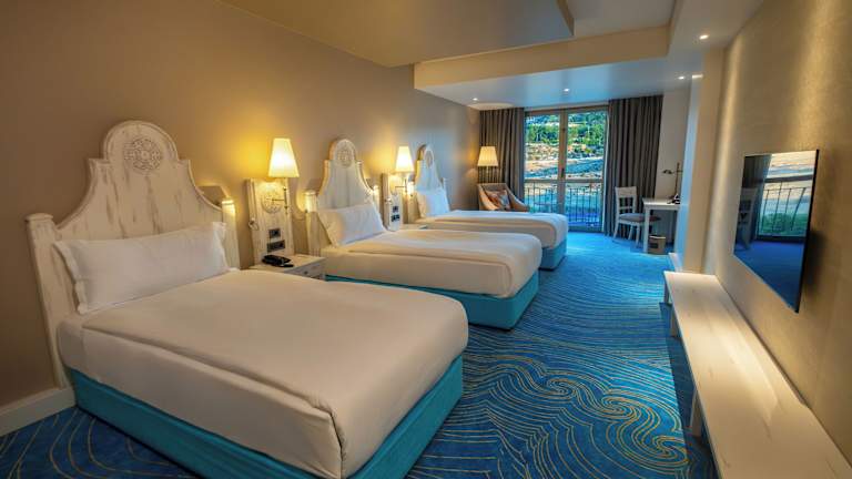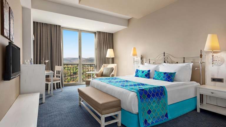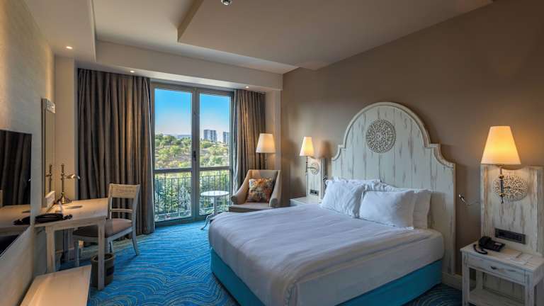 Die Zimmer des Hotels sind mit Klimaanlage und individuell regulierbarer Heizung ausgestattet. Die überwiegende Mehrheit der Zimmer verfügt über einen Balkon. Zur Standardausstattung gehören ein Doppelbett oder Kingsize-Bett, ein Safe, eine Minibar, ein Schreibtisch sowie eine Tee-/Kaffeemaschine. Zudem sind eine Waschmaschine, ein Bügelset und eine Hosenpresse vorhanden. Zu den technischen Annehmlichkeiten zählen ein Telefon mit Direktwahl, ein TV-Gerät mit Satelliten-/Kabelempfang und kostenloses WLAN. In den Badezimmern erwartet die Gäste eine Kombination aus Dusche und Badewanne, sowie kostenfreie Kosmetikartikel. Barrierefreie Badezimmer sind ebenfalls buchbar.