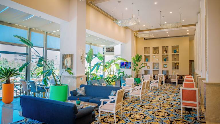Das Hotel Erdoba Elegance Convention Center verfügt über 220 Zimmer, darunter 6 Suiten und 213 Doppelzimmer, verteilt auf 10 Etagen, die bequem mit einem Aufzug erreichbar sind. Es gibt eine rund um die Uhr besetzte Rezeption, sowie eine Gepäckaufbewahrung und einen Safe. Zu den weiteren Einrichtungen zählen ein Kamin für eine behagliche Atmosphäre, ein Garten, ein Spielplatz, ein Zeitungskiosk, ein TV-Raum und eine Bibliothek. Bei Anreise mit dem Auto können die Gäste die unbewachten Parkmöglichkeiten oder die Garage nutzen. Ein 24h-Sicherheitsdienst, Babysitterservice, Autovermietung und ein kostenpflichtiger Zimmerservice stehen zur Verfügung. Außerdem gibt es Konferenzräume für geschäftliche Anlässe. Das Hotel wurde 2011 eröffnet.