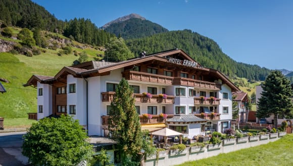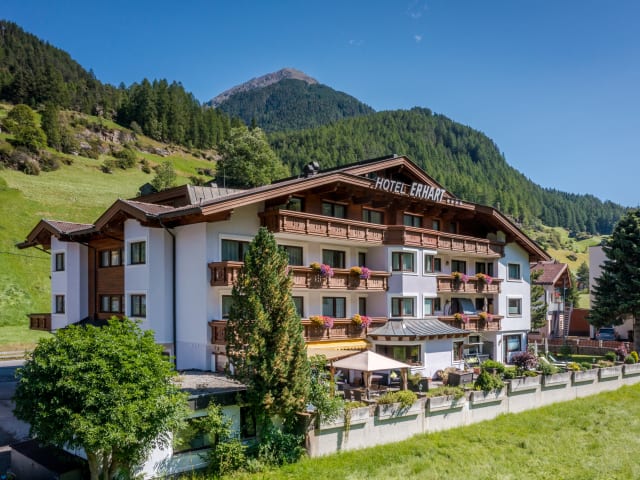 Genießen Sie Ihre Auszeit vom Alltag im 4* Hotel Erhart im Ötztal. Unser Hotel befindet sich in ruhiger und dennoch zentrumsnaher Lage in Sölden. In wenigen Gehminuten erreichen Sie die Bergbahnen und das Dorfzentrum. Im kleinen feinen Hotel am besten Fleck in Sölden im Ötztal - fernab von Verkehr und lebendigem Treiben der Hauptstraße, umgeben von sattem Grün und freien Ausblick geniessen Erhart Gäste den Urlaub.