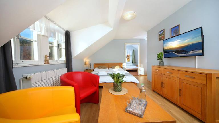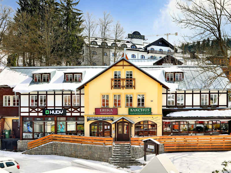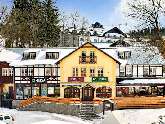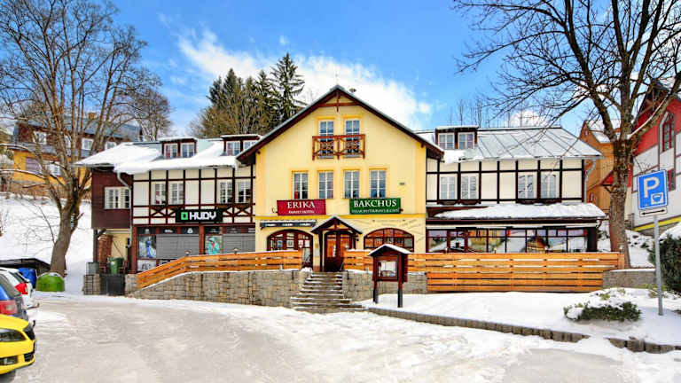 Das Hotel Erika in Špindlerův Mlýn ist ein charmantes, familiengeführtes Hotel im Herzen der Stadt. Die Zimmer sind komfortabel und mit modernen Annehmlichkeiten wie einem LCD-TV und einem eigenen Bad ausgestattet. Im hoteleigenen Restaurant können Sie regionale und internationale Küche sowie eine große Auswahl an Weinen genießen. Entspannen Sie sich nach einem aktiven Tag in der Sauna, die Sie nach vorheriger Reservierung kostenfrei nutzen können. Das Hotel bietet auch eine Skiaufbewahrung mit einem Skischuhtrockner. Parken Sie Ihr Fahrzeug bequem und kostenfrei auf dem öffentlichen Parkplatz in der Nähe des Hotels.