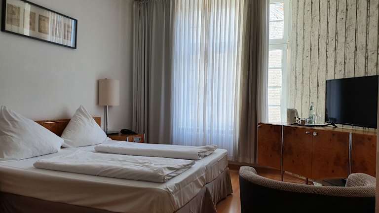 Das Hotel erlanger Hof bietet eine 24-Stunden-Rezeption und ist ein modernes Hotel, das Gäste in einem ansprechenden Ambiente empfängt. Die Zimmer sind zum Innenhof ausgerichtet.