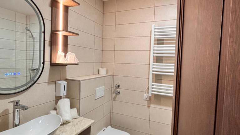 Die Zimmer im Hotel Erzsébet sind komfortabel eingerichtet und verfügen über eine Klimaanlage für angenehme Temperaturen. Die meisten Zimmer verfügen auch über eine Terrasse, auf der Sie entspannen können. Zur Ausstattung gehören außerdem eine Minibar, ein Telefon, Sat-TV, ein Radio und WLAN. Die Badezimmer sind mit einer Dusche, einer Badewanne und einer Whirlwanne ausgestattet. Haartrockner und Bademäntel stehen Ihnen zur Verfügung.