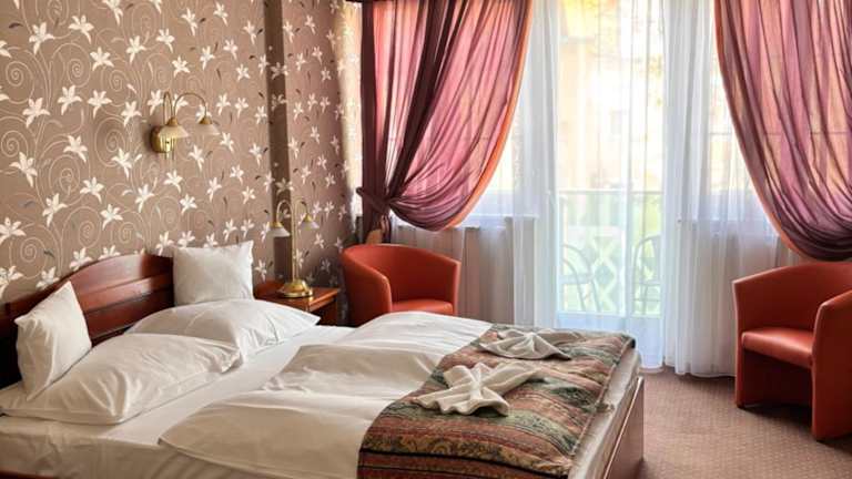 Das Hotel Erzsébet befindet sich im Zentrum von Hévíz und ist somit der perfekte Ausgangspunkt, um die Umgebung zu erkunden. Der berühmte Thermalsee von Hévíz ist nur 200 m entfernt und lädt zum Entspannen und Baden ein. In der Umgebung finden Sie auch zahlreiche Restaurants, Cafés und Einkaufsmöglichkeiten. Die Stadt Keszthely mit ihrem beeindruckenden Schloss und dem Balaton-See ist nur eine kurze Autofahrt entfernt.