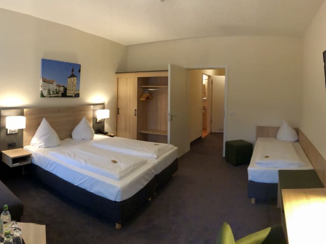 Unsere modern eingerichteten Zimmer verteilen sich auf Haupt- und Nebengebäude, welche mit unserem herrlichen Sommergarten verbunden sind. Seit 2019 schlafen Sie in neu renovierten Hotelzimmern! Alle unsere Zimmer sind ausgestattet mit WC und Dusche (teils auch Badewanne), GRUNDIG - Flat - TV, Direktwahltelefon und kostenlosem WLAN. Im Haupthaus gibt es einen Aufzug sowie ein behindertengerecht ausgestattetes Zimmer. Unser Haus wurde ursprünglich im Jahre 1816 erbaut. Aus diesem Grund versprechen wir Ihnen keine maßstabsgetreuen Zimmer, sondern viel Individualität. Und auch nach der Kernsanierung 2008, verbreitet das Hotel Europa weiterhin den Charme eines denkmalgeschützten Hauses. Lassen Sie sich überraschen…