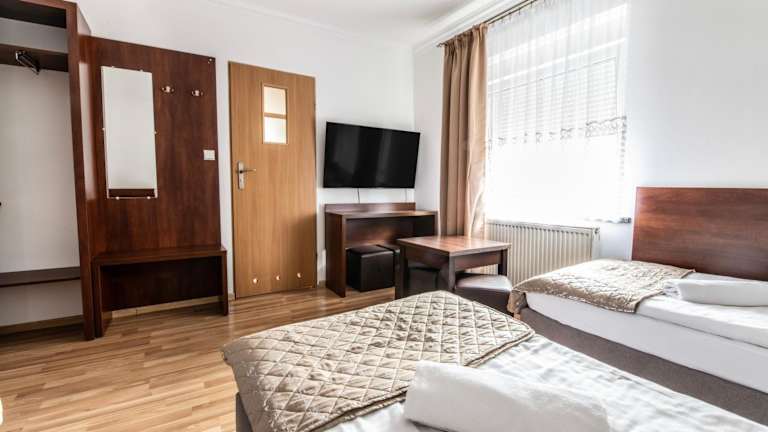 Die Zimmer im Noclegi Europa sind klassisch eingerichtet und in hellen Farben gehalten. Jedes Zimmer verfügt über einen TV und bietet Ihnen somit zusätzlichen Komfort während Ihres Aufenthalts. Bettwäsche wird gestellt, um Ihnen einen angenehmen Schlaf zu ermöglichen.