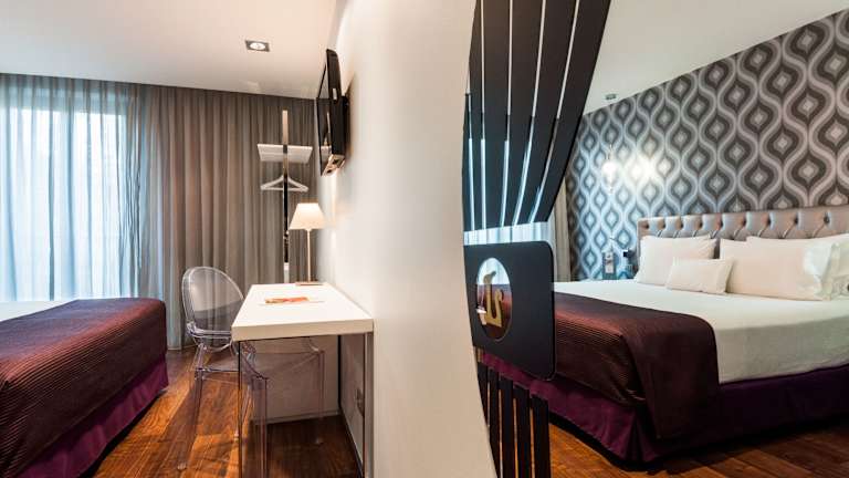 Die Zimmer im Ikonik Ramblas Hotel sind stilvoll eingerichtet und mit modernen Annehmlichkeiten ausgestattet. Jedes Zimmer verfügt über eine Klimaanlage, kostenfreies WLAN, einen Flachbild-Sat-TV, eine Minibar und ein eigenes Badezimmer mit Haartrockner. Die Zimmer sind mit Parkettboden und eleganten Dekorationen gestaltet und bieten den Gästen einen komfortablen Rückzugsort inmitten des geschäftigen Treibens der Stadt.