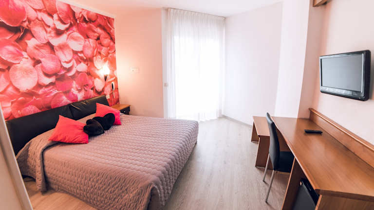 Das Hotel verfügt über 55 Zimmer auf 3 Etagen, die mit einem Aufzug erreichbar sind. Die Zimmer sind einfach eingerichtet und verfügen über ein eigenes Bad. Einige Zimmer bieten einen Balkon mit Blick auf den Garten oder den Monte Stivo. Zur Ausstattung gehören auch eine Klimaanlage, eine Heizung, ein Fernseher und WLAN.