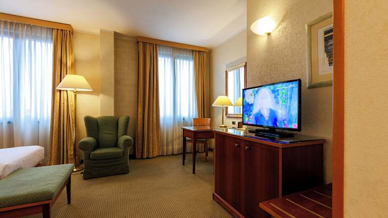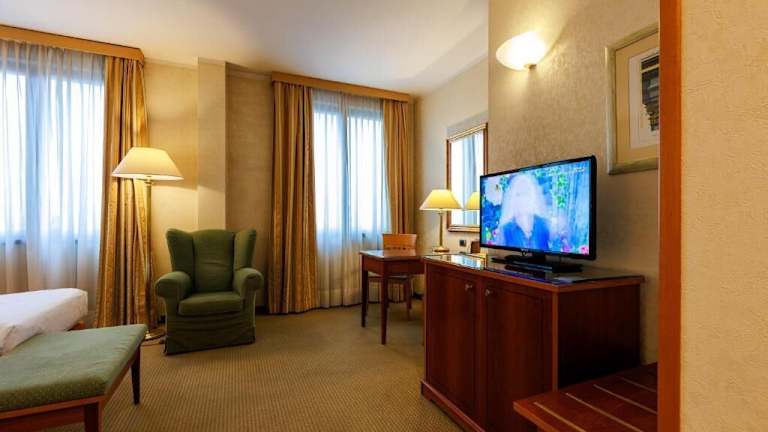 Die klimatisierten Zimmer im Hotel Excelsior Magenta sind komfortabel und modern eingerichtet. Jedes Zimmer verfügt über einen TV, einen gemütlichen Sitzbereich und einen Schreibtisch, der sich ideal zum Arbeiten eignet. Im Badezimmer stehen Ihnen kostenlose Pflegeprodukte und ein Haartrockner zur Verfügung. Die Zimmer bieten auch kostenfreies WLAN, so dass Sie jederzeit mit der Welt verbunden bleiben können.