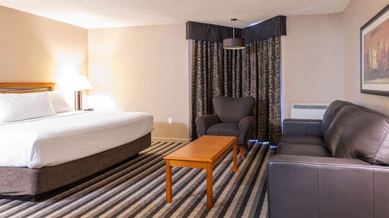 Die modernen Zimmer im Royal Hotel West Edmonton, Trademark Collection by Wyndham bieten Annehmlichkeiten wie eine Kaffeemaschine und einen Arbeitsbereich. Jedes Zimmer ist komfortabel eingerichtet und verfügt über einen Fernseher und kostenloses WLAN. Nach einem ereignisreichen Tag können Sie sich zurücklehnen und einen Film auf dem Zimmer ansehen.