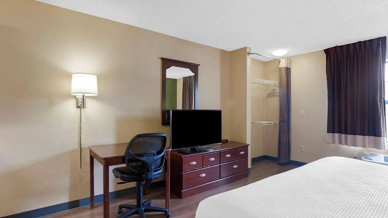 Das Extended Stay America - Fremont Blvd. South ist die perfekte Wahl für längere Aufenthalte in Fremont. Die Zimmer sind mit einer praktischen Küchenzeile ausgestattet und das Hotel bietet kostenfreies WLAN, eine 24-Stunden-Rezeption und ein leckeres Frühstück zum Mitnehmen. Genießen Sie den Komfort einer voll ausgestatteten Küche, Wäschemöglichkeiten und hochwertiger Bettwäsche. Die Lage des Hotels ist ideal, um die nahegelegenen Attraktionen wie den Vergnügungspark Great America, die Great Mall und Tesla Motors zu erkunden.
