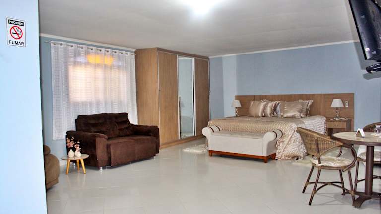 Jedes Zimmer in der Unterkunft Hotel Extrema Club ist mit Klimaanlage, einem Kleiderschrank, einem Flachbild-TV sowie einem eigenen Badezimmer ausgestattet. Zur Zimmerausstattung gehören außerdem Bettwäsche, Handtücher und ein Balkon mit Stadtblick. Eine Minibar ist ebenfalls in jedem Zimmer vorhanden.