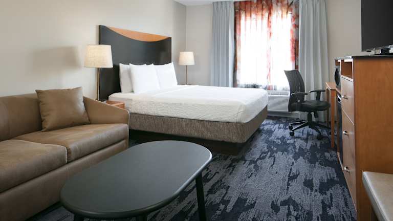 Die Zimmer im Fairfield Inn Manhattan, Kansas sind komfortabel und modern eingerichtet. Sie verfügen über eine Klimaanlage, einen Schreibtisch, Tee- und Kaffeezubehör sowie kostenfreies WLAN und Kabel-TV. Das Hotel bietet auch rollstuhlgerechte Zimmer und Nichtraucherzimmer.