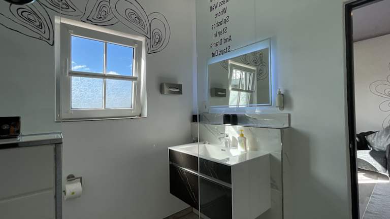 2 Standard Zimmer und eine Ferienwohnung im Haupthaus, jeweils mit eigenem Badezimmer plus "glamping Option" Wigwam Rising Moon mit eigenem Badezimmer stehen unseren Gästen zur Verfügung.