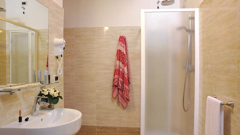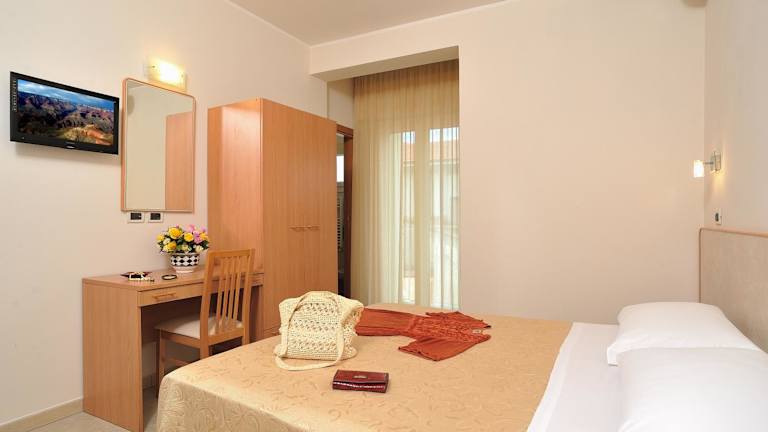 Die Zimmer im Hotel Favorita sind modern und farbenfroh eingerichtet. Sie bieten den Gästen Komfort und eine angenehme Atmosphäre. Zur Ausstattung gehören eine Klimaanlage, ein TV und kostenloses WLAN. Jedes Zimmer verfügt über ein eigenes Bad mit Dusche, WC und einem Haartrockner.
