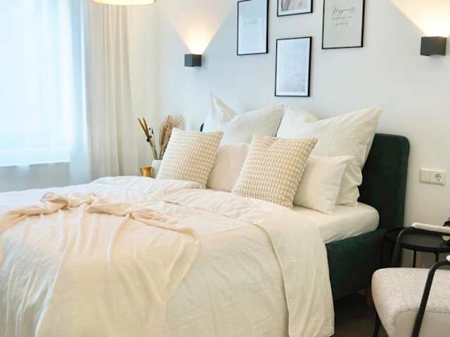 Die Unterkunft umfasst eine Ferienwohnung mit einem Schlafzimmer sowie einer Küche, die mit einem Kühlschrank und einem Geschirrspüler ausgestattet ist. Darüber hinaus stehen ein Badezimmer mit Dusche und Haartrockner sowie ein Balkon und eine Terrasse zur Verfügung. Handtücher und Bettwäsche sind ebenfalls vorhanden. Die Unterkunft bietet die Möglichkeit, kostenfreies WLAN und einen Flachbild-TV in den Zimmern zu nutzen.