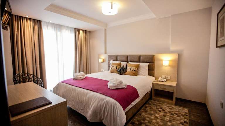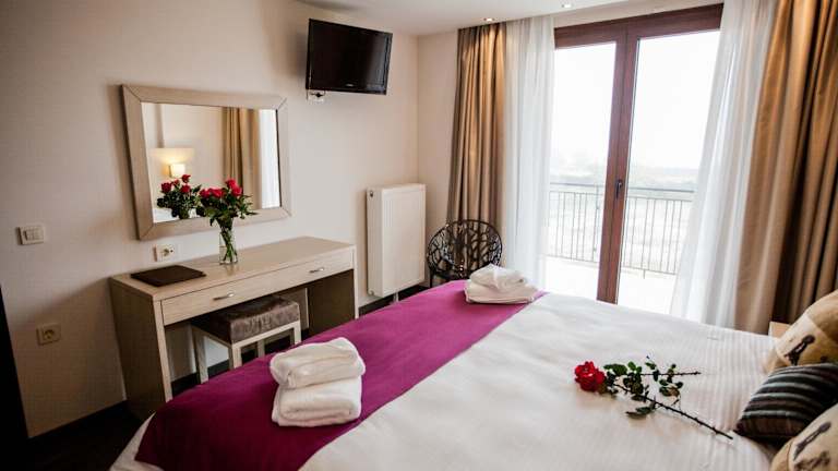 Die Zimmer und Suiten im Filokalia Hotel sind elegant gestaltet und bieten einen herrlichen Blick auf den Pamvotida-See. Die sanften Farbtöne und die Verwendung von farbenfrohen Akzenten schaffen eine entspannte Atmosphäre. Zur Ausstattung gehören Klimaanlage, Flachbild-TV, Safe und Minikühlschrank. Kostenloses WLAN steht Ihnen in allen Unterkünften zur Verfügung.