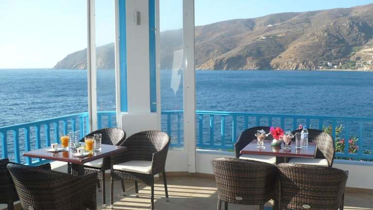 Genießen Sie ein köstliches kontinentales Frühstück im Speiseraum des Hotels, um gestärkt in den Tag zu starten. An der Snackbar des Hotels können Sie Kaffee, Getränke und leichte Mahlzeiten genießen, während Sie den freien Blick auf die Ägäis genießen.