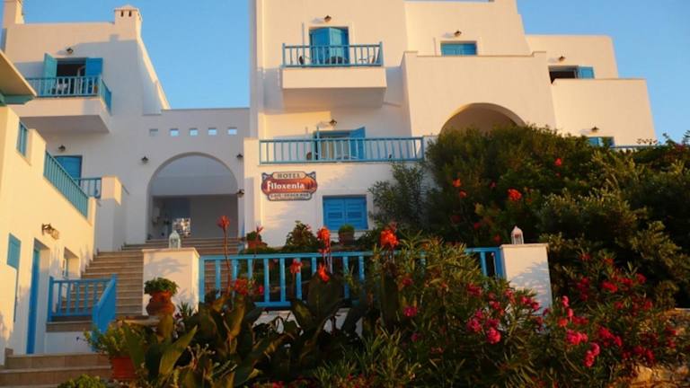 Das Hotel Filoxenia liegt auf einem Hügel über der Bucht von Aegiali und bietet einen herrlichen Blick auf das Meer. Der Sandstrand von Aegiali ist nur 150 m entfernt und das Zentrum und der Hafen von Aegiali erreichen Sie nach nur 100 m. Die malerische Stadt Amorgos liegt 16 km entfernt und der Hafen Katapola ist 21 km entfernt. Das Hotel bietet einen Transfer vom und zum Hafen gegen Aufpreis an und kostenlose öffentliche Parkplätze stehen zur Verfügung.