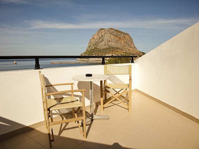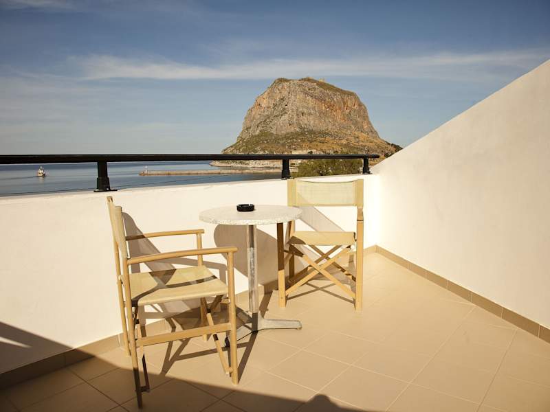 Die Zimmer im Filoxenia Hotel sind komfortabel und stilvoll eingerichtet. Jedes Zimmer verfügt über einen eigenen Balkon, von dem aus man einen herrlichen Blick auf das Meer und den beeindruckenden Felsen von Monemvasia genießen kann. Zur Ausstattung gehören eine Klimaanlage, ein Haartrockner, ein Flachbild-TV und ein Kühlschrank. Die Zimmer bieten den Gästen alles, was sie für einen angenehmen Aufenthalt benötigen.