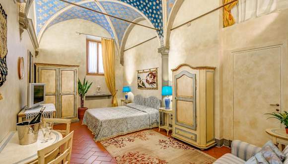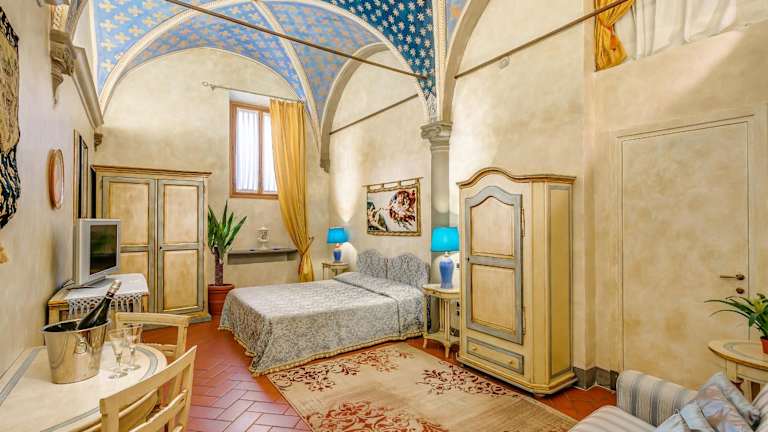 Die Zimmer im Firenze Suite Hotel sind geräumig und bieten eine einzigartige Atmosphäre mit Gewölbedecken und originalen Fresken. Jedes Zimmer ist klimatisiert und verfügt über einen Flachbild-Sat-TV. Kostenfreies WLAN ist in allen Zimmern verfügbar.