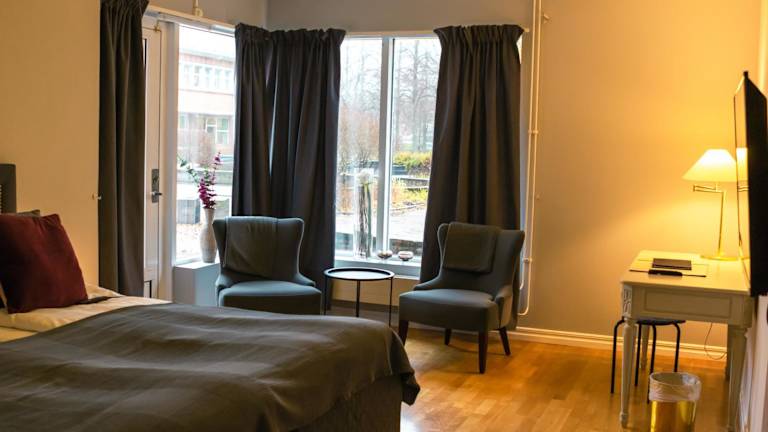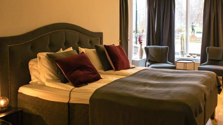 Die Zimmer im First Hotel Olofström sind geräumig, komfortabel und individuell gestaltet. Sie verfügen über eine traditionelle skandinavische Einrichtung und handgemachte Teppiche. Die Zimmer bieten einen schönen Blick auf den Park und das stilvolle Interieur sorgt für eine angenehme Atmosphäre. Kostenfreies WLAN steht Ihnen ebenfalls zur Verfügung.