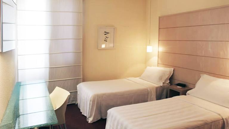 Die Zimmer sind hell eingerichtet und verfügen über ein Doppelbett, eine Minibar, einen Schreibtisch sowie einen 22-Zoll-LCD-TV mit Sat- und Pay-per-View-Kanälen. Ein Kühlschrank und eine Hosenpresse sind ebenfalls vorhanden. Die Badezimmer sind mit einer Dusche, Badewanne und Bidet ausgestattet. Es gibt auch rollstuhlgerechte Zimmer und Nichtraucheroptionen.