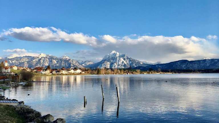 Das Hotel Fischer am See liegt direkt am Ufer des Hopfensees und bietet eine atemberaubende Aussicht auf die Alpen und das berühmte Schloss Neuschwanstein. Die Lage in der Nähe der österreichischen Grenze ermöglicht es Ihnen, die Region zu erkunden und die vielen Freizeitmöglichkeiten wie Wandern, Radfahren, Bergsteigen und Skifahren zu nutzen.