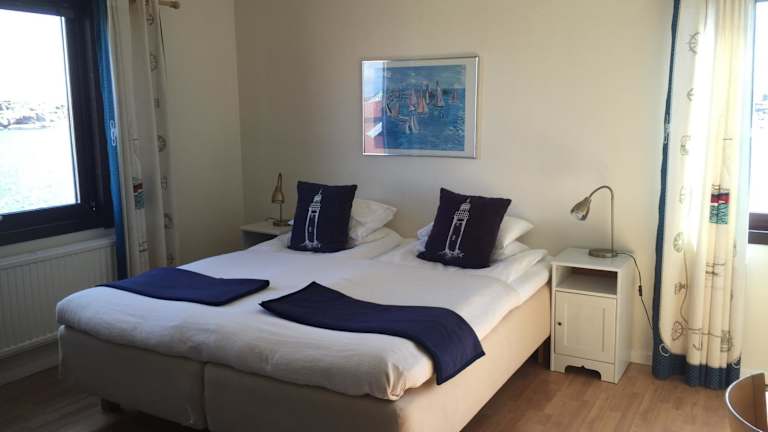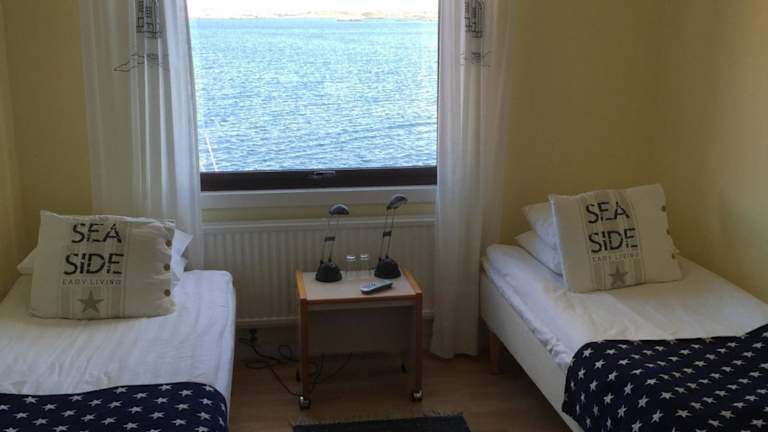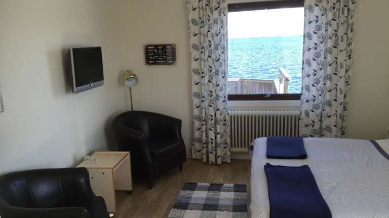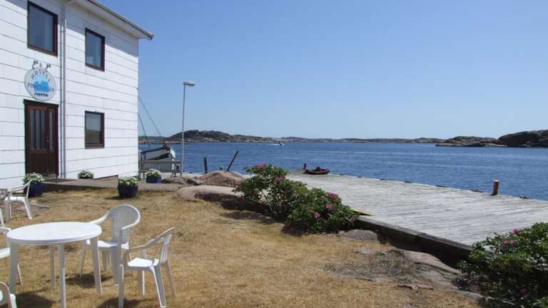 Das Zimmer ist sehr klein und hat keine Klimaanlage. Allerdings ist die Lage toll. Vom Zimmer aus hatte ich direkte Sicht aufs Wasser. Es gibt einen Rasen mit Tischen und Stühlen direkt vor dem Hotel, das Wasser mit den schönen Felsen ist dann nur noch einen Steg entfernt. Sehr schönes Dörfchen am Wasser, besonders bei Sonnenuntergang schön. Hotel liegt wenige Kilometer vom Touristenort Smögen entfernt. In Kungshamn ist es weniger touristisch. Parkmöglichkeiten nicht direkt vordem Hotel vorhanden, jedoch gibt es…
