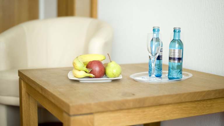 Starten Sie Ihren Tag mit einem leckeren Frühstück im sonnigen Speisesaal des Hotels. Hier können Sie sich mit regionalen Spezialitäten verwöhnen lassen. Das Hotelrestaurant bietet auch eine Sonnenterrasse, auf der Sie regionale Speisen genießen können. Für eine gemütliche Atmosphäre steht Ihnen auch eine Bar zur Verfügung, in der Sie lokale Biere probieren können. Zusätzlich gibt es einen Obstkeller, der das Angebot des Hotels abrundet.