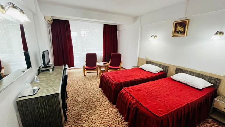 Das Hotel Flora befindet sich in der Nähe des Stadtzentrums von Drobeta-Turnu Severin. Es liegt in einer ruhigen Gegend, umgeben von viel Grün, an der Straße nach Timisoara. Die Lage bietet eine entspannte Atmosphäre und eine gute Anbindung an die umliegenden Sehenswürdigkeiten.