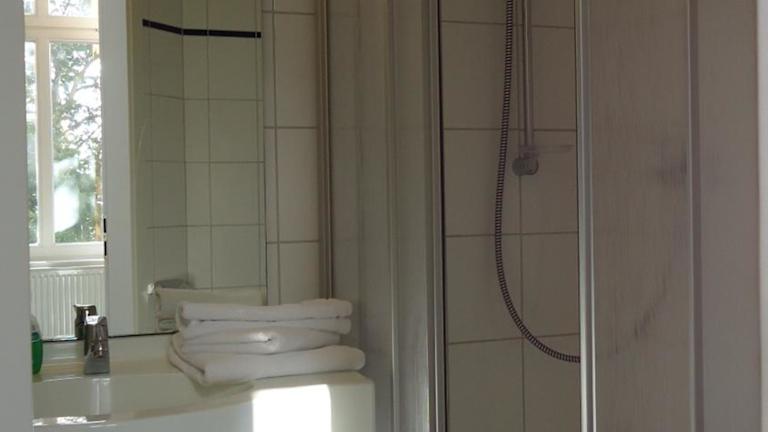 Von außen ein schönes Haus in guter Lage. 2 Etagen mit hohen Decken. War mit 2 schweren Fahrradtaschen unterwegs , niemand hilft die Taschen bis unters Dach zu tragen .