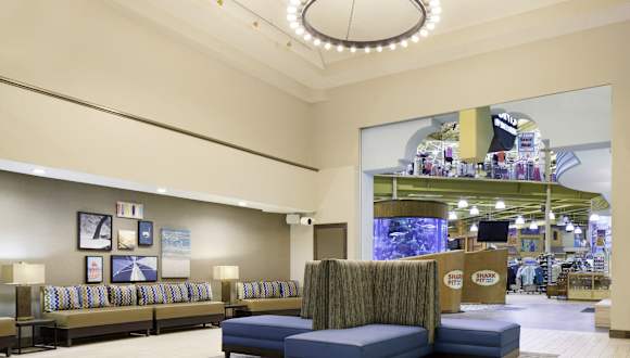 Das Hotel Four Points by Sheraton Cocoa Beach bietet eine ideale Lage nur wenige Gehminuten vom Atlantik entfernt. Hier erwartet Sie ein Fitnesscenter, ein Businesscenter und ein einzigartiges Restaurant mit einem beeindruckenden Haibecken. Die Zimmer sind thematisch gestaltet und bieten Ihnen alle Annehmlichkeiten für einen komfortablen Aufenthalt. Das Hotel verfügt zudem über einen Außenpool, einen Whirlpool und einen Shuttleservice in die Umgebung.