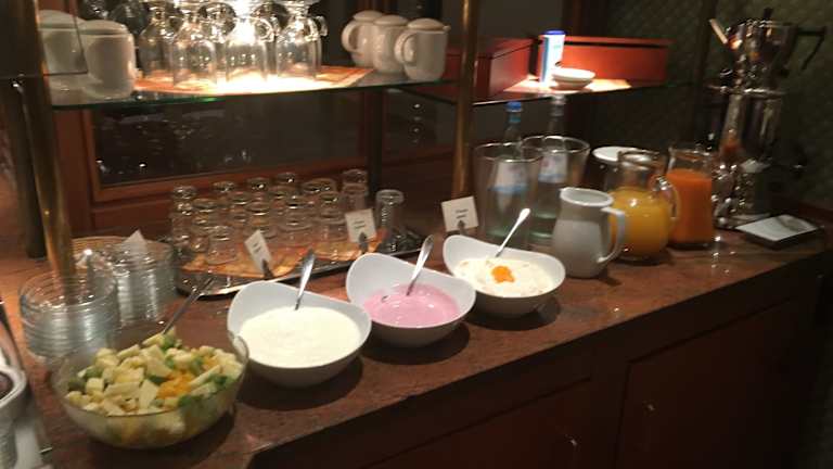 Morgens wird ein vielfältiges Frühstücksbuffet angeboten. Außerdem steht eine Bar im Erdgeschoss zur Verfügung, die zum Entspannen einlädt.