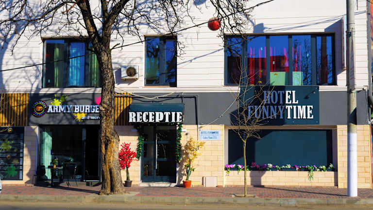 Das Hotel Funnytime in Bukarest ist der ideale Ort, um sich vom hektischen Stadtleben zu erholen. Es liegt nur 10 Minuten vom Zentrum entfernt und bietet klimatisierte und schallisolierte Zimmer für erholsame Nächte. Das freundliche Personal steht Ihnen jederzeit zur Verfügung und hilft Ihnen gerne bei Fragen und Informationen. Nutzen Sie auch den Konferenzraum für geschäftliche Angelegenheiten. Die Lage des Hotels ermöglicht es Ihnen, die zahlreichen Sehenswürdigkeiten der Stadt leicht zu erreichen, darunter die National Arena und den Platz der Verfassung. Kostenlose Parkplätze stehen zur Verfügung, je nach Verfügbarkeit.