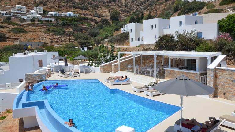Das Galaxy Hotel in Mylopotas bietet seinen Gästen eine vorteilhafte Lage nur wenige Schritte vom Strand entfernt. Mit kostenfreiem WLAN und Parkplätzen ist es die perfekte Wahl für einen entspannten Urlaub. Die Zimmer sind mit Klimaanlage, Kühlschrank und einem geräumigen Balkon ausgestattet und bieten einen wunderschönen Blick auf das Meer. Genießen Sie Ihr Frühstück und á-la-carte-Gerichte am Pool, während Sie die schöne Terrasse und den Außenpool genießen. Die Bushaltestelle in der Nähe ermöglicht es Ihnen, bequem den Hafen von Ios und Chora zu erreichen.