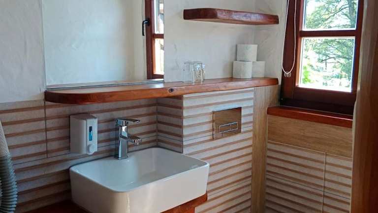 Die Zimmer im Galindia Resort sind im Landhausstil eingerichtet und bieten eine gemütliche Atmosphäre. Die Einrichtung umfasst Korbmöbel, Holzmöbel und stilvolle Badezimmer. Jedes Zimmer verfügt über ein eigenes Bad mit Dusche oder Badewanne sowie Sat-TV. Hier können Sie sich nach einem aktiven Tag entspannen und den Komfort einer traditionellen Unterkunft genießen.
