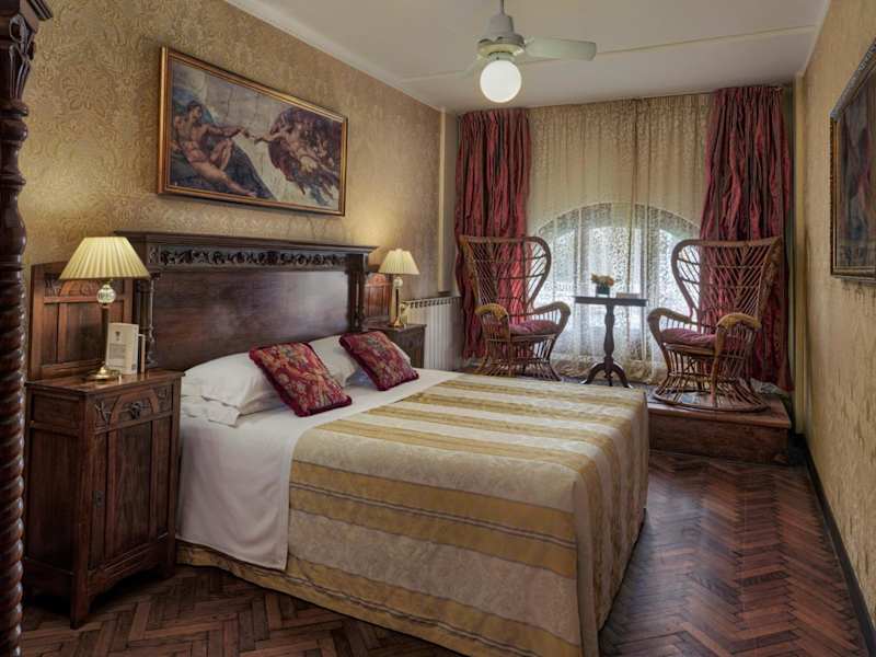 Die Zimmer im Hotel Galleria sind im antiken Stil eingerichtet und bieten den Gästen eine gemütliche und einladende Atmosphäre. Die Zimmer verfügen über Holzmöbel und klassisches Dekor, das den historischen Charme des Gebäudes widerspiegelt. Einige Zimmer verfügen über ein eigenes Bad, während andere über ein Gemeinschaftsbad verfügen. Alle Zimmer sind mit einem Ventilator ausgestattet, um den Gästen während ihres Aufenthalts Komfort zu bieten.