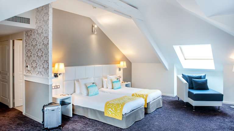 Die 91 Zimmer des Hotels bieten eine elegante und komfortable Atmosphäre. Jedes Zimmer ist klimatisiert und verfügt über Sat-TV, eine Minibar und ein eigenes Badezimmer mit Badewanne oder Dusche. Einige Zimmer bieten zudem einen Balkon mit Blick auf den eigenen Park. WLAN steht den Gästen kostenlos zur Verfügung.