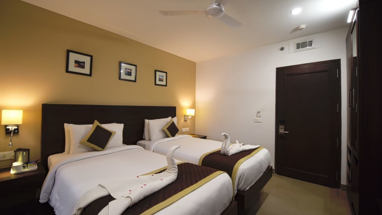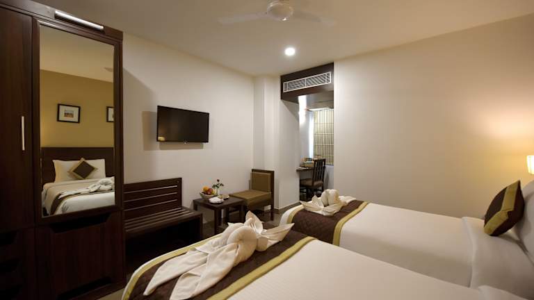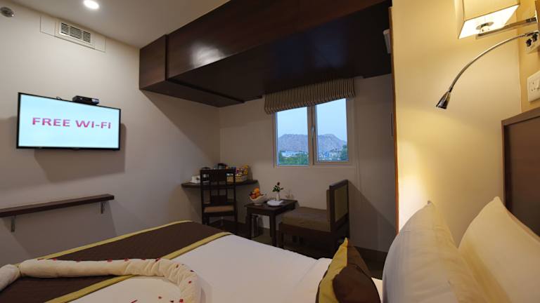 Die klimatisierten Zimmer im Hotel Gandharva - A Green Hotel bieten Ihnen einen komfortablen Rückzugsort mit modernen Annehmlichkeiten. Jedes Zimmer verfügt über ein eigenes Bad mit Dusche und kostenfreien Pflegeprodukten. Ein Flachbild-Sat-TV und ein DVD-Player sorgen für Unterhaltung, während ein Schreibtisch Ihnen einen Arbeitsbereich bietet. Genießen Sie den Blick auf den Pool und die Berge von Ihrem Zimmer aus.