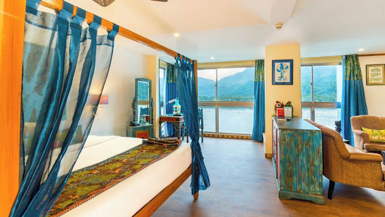 Die Zimmer im Hotel Ganga Kinare sind komfortabel eingerichtet und verfügen über Holzböden. Sie bieten eine beruhigende Farbgestaltung in Pastelltönen und sind mit einem Flachbild-TV, einem Kleiderschrank und einem eigenen Bad ausgestattet. Das Bad bietet warmes und kaltes Wasser sowie Badewanne und Dusche.