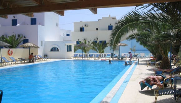 Das Hotel Gardenia liegt im beliebten Ort Perissa auf Santorin. Der Strand ist nur etwa 200 m entfernt und lädt zu entspannten Stunden am Meer ein. Das Stadtzentrum von Perissa erreichen Sie bequem zu Fuß. In der Umgebung gibt es auch einen Golfplatz, der nur etwa 400 m entfernt ist. Der Flughafen ist etwa 23 km vom Hotel entfernt.